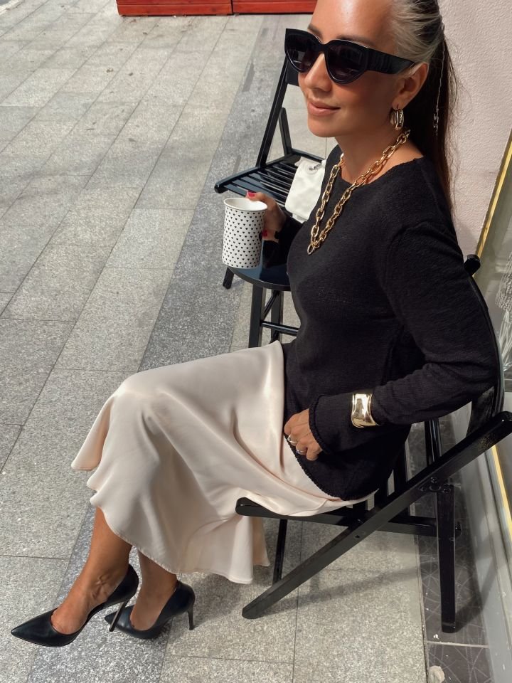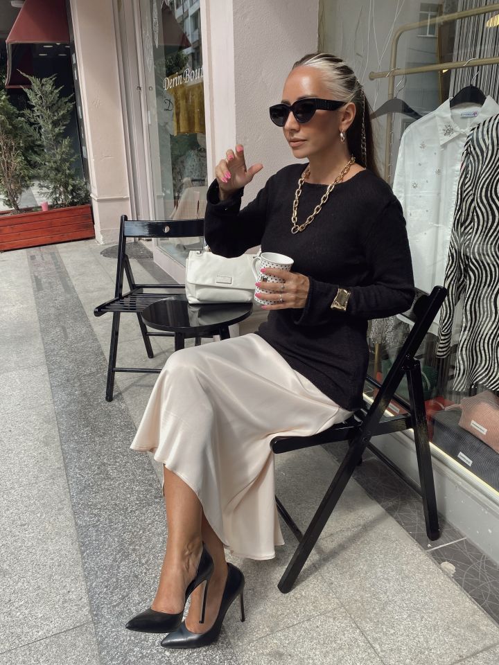 ara bedenseniz yada görseldeki gibi dökümlü dursun istiyorsanız bir beden büyük alınız